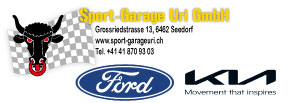 Die Sport-Garage Uri GmbH ist eine offizielle Vertretung von Ford, Kia mit Sitz im Kanton Uri. Sie erreichen uns in 35 Minuten ab Luzern oder 25 Minuten ab Schwyz. Eine Auswahl an Neuwagen und gepflegten, aufbereitete Occasionen zu attraktiven Preisen warten auf Sie.